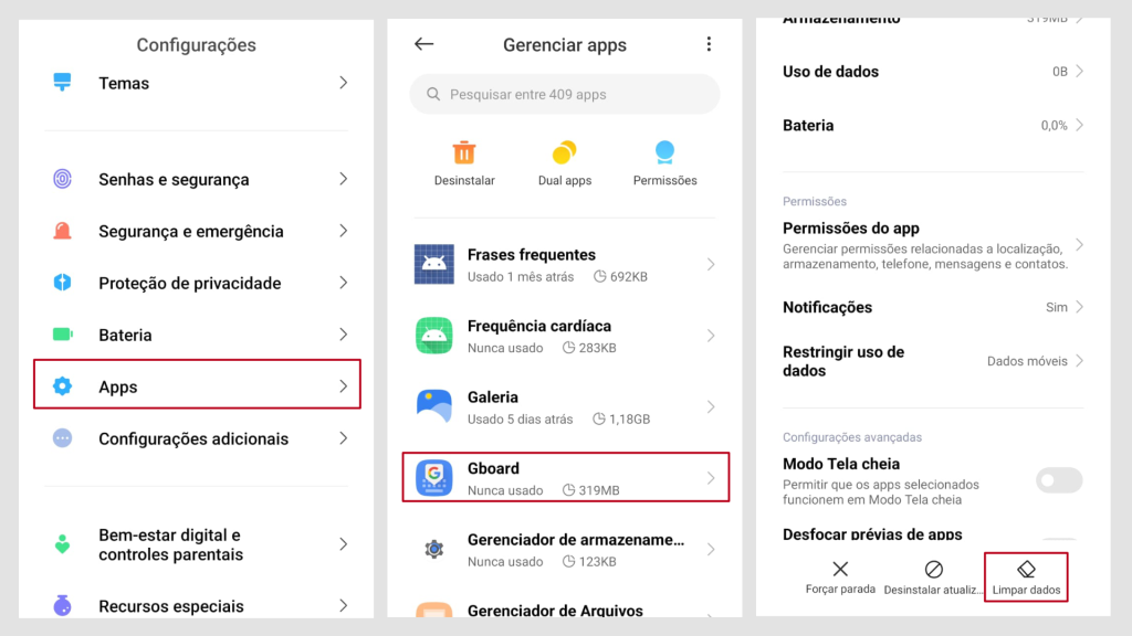 Nos dispositivos Android, fazer essa limpeza do histórico é bem simples, mas perigosa. Esse método não só vai apagar o histórico do seu teclado do mensageiro como o de todas as outras aplicações do seu aparelho, então é bom ter isso em mente.